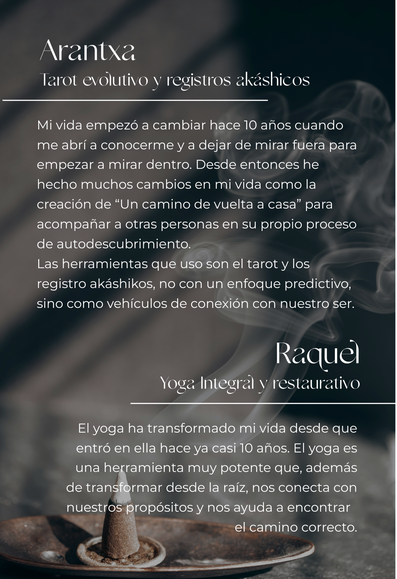 En este taller conectaremos con el presente a través del cuerpo y la naturaleza para poder volver la mirada a nosotras y observar qué creencias debo soltar o que cosas sí que conectan conmigo en este momento vital. Utilizaremos el yoga, la meditación y el tarot evolutivo como herramientas de conexión.
